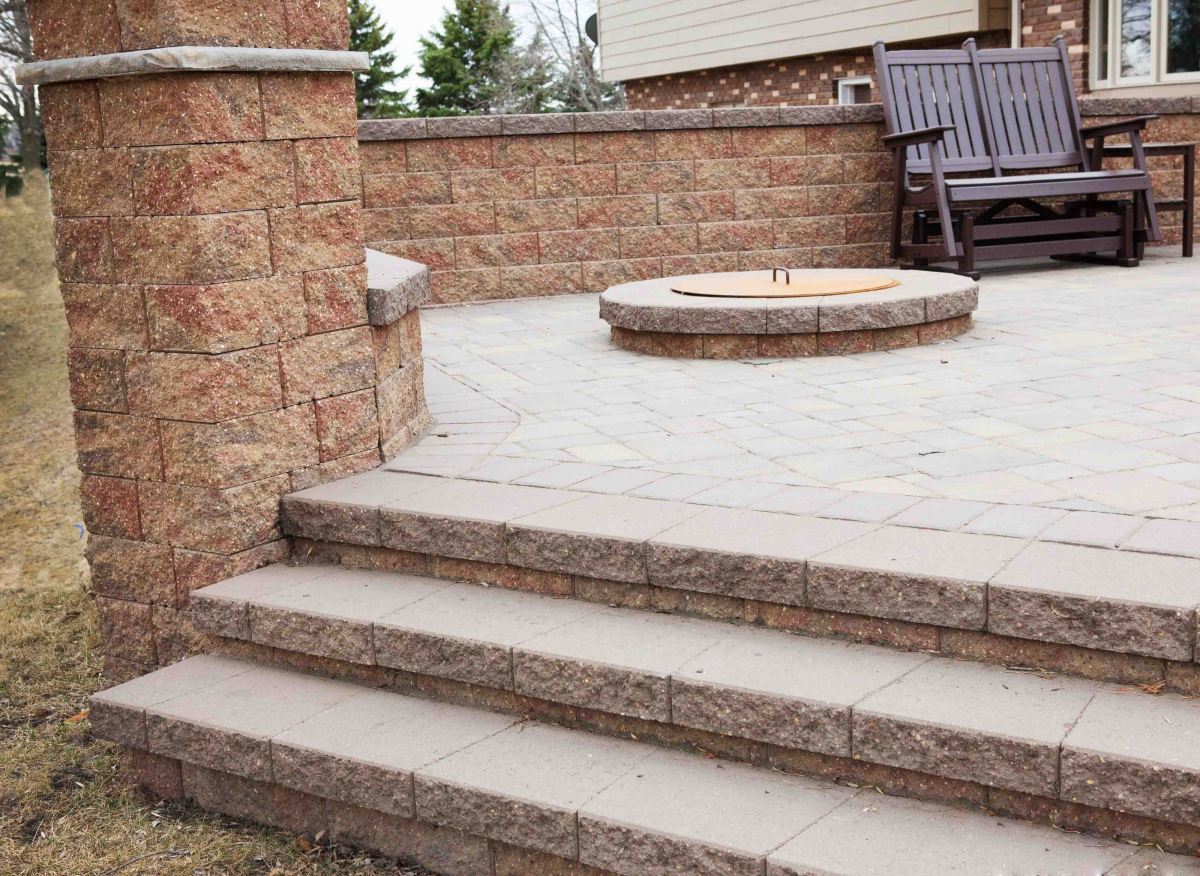 Paver patio with fire pit and steps